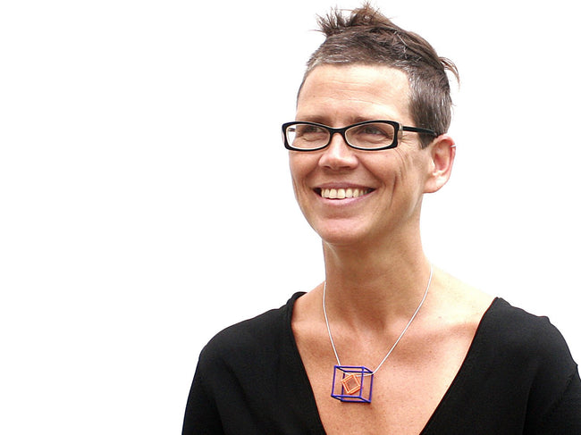 3D printed pendant, sculptural interlocking cubes, nesting cubes on sterling silver chain, made in light weight nylon, dyed, designed by Elizabete Ludviks, available in cube sizes x-small to xx-large