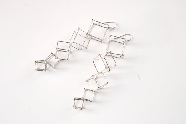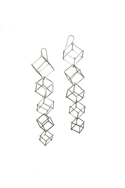 Handmade with five Sterling silver cubes cascading from large to small.