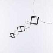 CUBE - BLACK & WHITE pendant, with 5 (in total) 3D printed hand dyed BLACK nylon cubes and handmade Sterling silver ("WHITE") cubes.