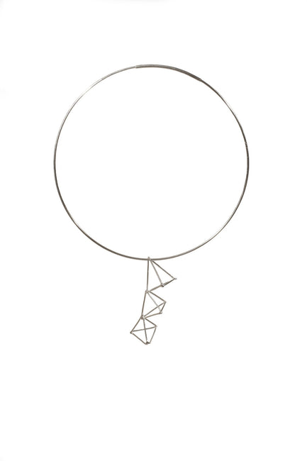Sculptural handmade pendants with three cascading Sterling silver triangles.