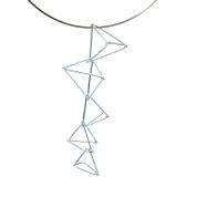 Sculptural handmade pendants with five cascading Sterling silver cubes.