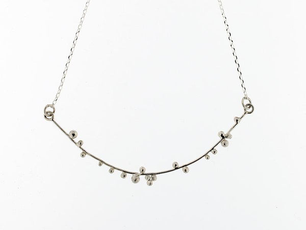 Handmade Sterling silver "branch" with bud-like fused spheres, on a fine Sterling silver chain. Each pendant is composed of a curved crescent