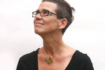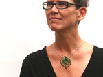 3D printed pendant, sculptural interlocking cubes, nesting cubes on sterling silver chain, made in light weight nylon, dyed, designed by Elizabete Ludviks