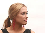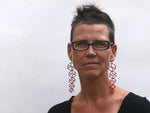 3D printed earrings, sculptural interlocking cubes, cascading from large to small with silver ear wires, made in light weight nylon, dyed, designed by Elizabete Ludviks. Made to order, ships in two weeks.