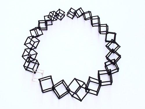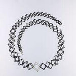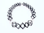 26" Cube Necklaces feature 3D printed hand dyed BLACK nylon cubes with handmade Sterling silver ("WHITE") cube accents.