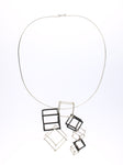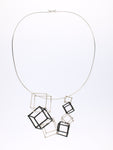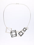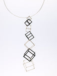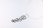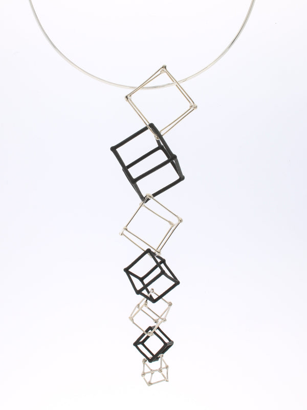 CUBE - BLACK & WHITE pendant, with 7 (in total) 3D printed hand dyed BLACK nylon cubes and handmade Sterling silver ("WHITE") cubes.