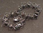 Cube & pearl necklace, sculptural, hand made sliver cubes with coin pearls, available in lenghts 16" to 75", designed by Elizabete Ludviks