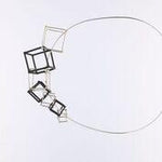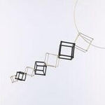 CUBE - WHITE & BLACK pendant, with 7 (in total) 3D printed hand dyed BLACK nylon cubes and handmade Sterling silver ("WHITE") cubes.