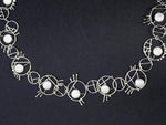 Pearl in wheel necklace, sculptural, hand made sliver wheels with coin pearls, available in lenghts 16" to 36", designed by Elizabete Ludviks