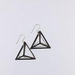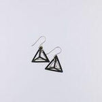 2 Triangle earrings in 3D printed hand dyed BLACK nylon with a Sterling silver ("WHITE") triangle nesting inside.